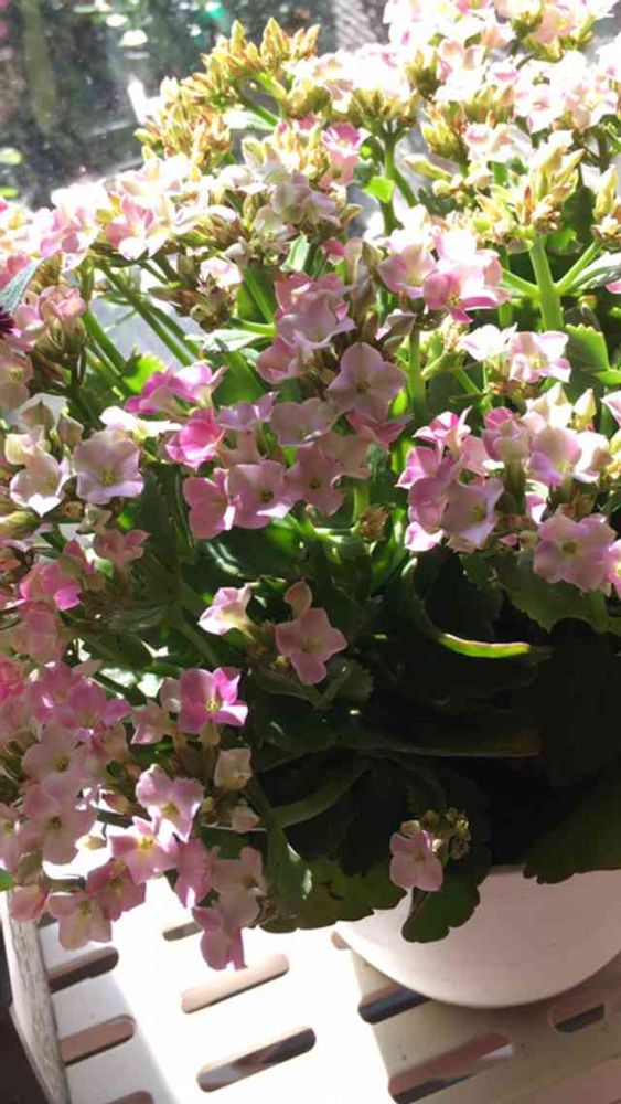 キッチンの窓辺でカランコエさんが日差しを浴びて嬉しそう😃🎶