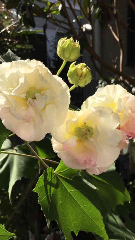 酔芙蓉さんも風にゆらゆらと〜〜気持ち良さげに咲いています🤗💕💕💕