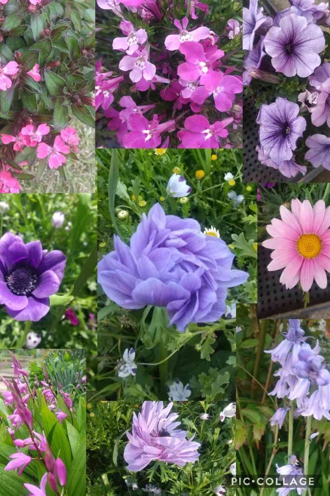 シラネ、ベロニカ、ペチュニア、アネモネ、マーガレット、シラン、釣鐘水仙