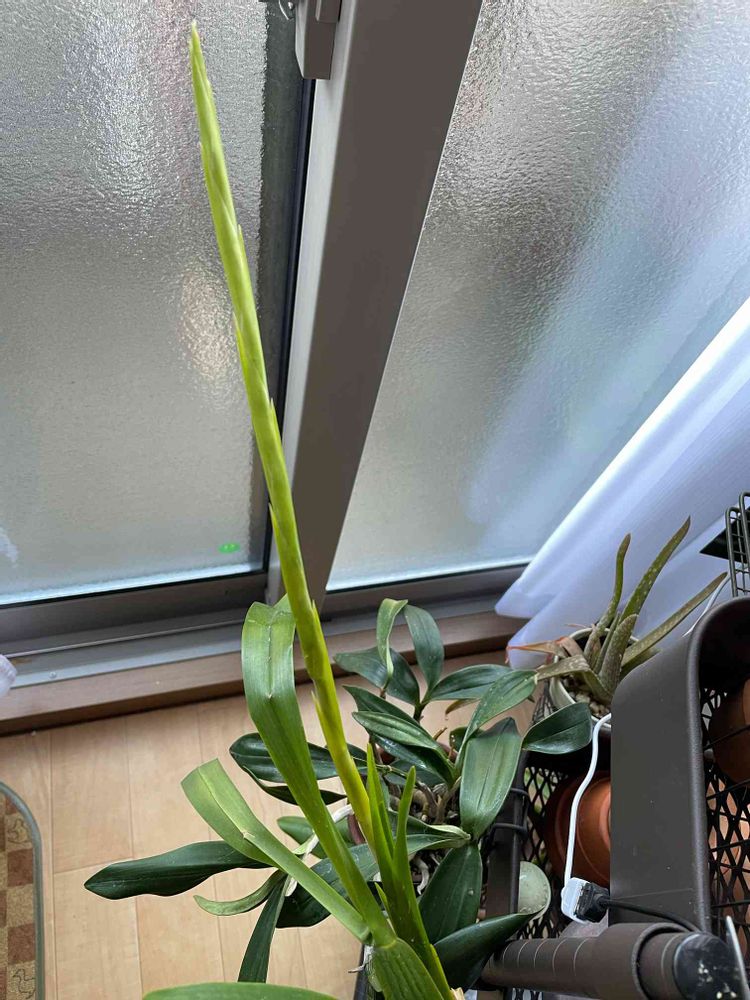 そしてこの子も何年かぶりに花芽を出した。確か、春蘭のようなシュッとした蘭。コレも名前が分からないのよね…