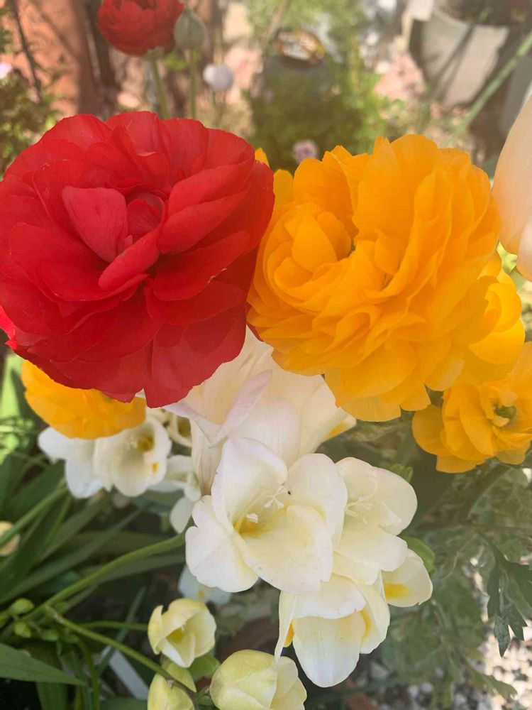 ラナンキュラスとっても可愛いく寄り添って咲いてる💕