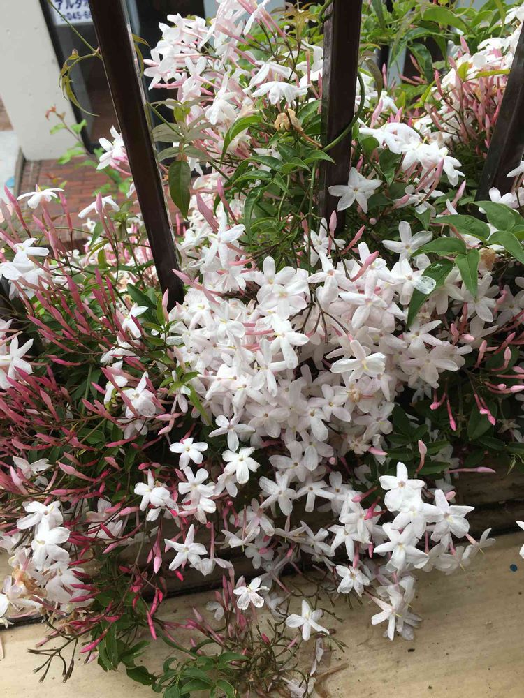一階からベランダに伸びて来た羽衣ジャスミン。暖かな陽射しの中、満開になり、素敵な香りに包まれます。洗濯物を干している間とても幸せです。^o^。
