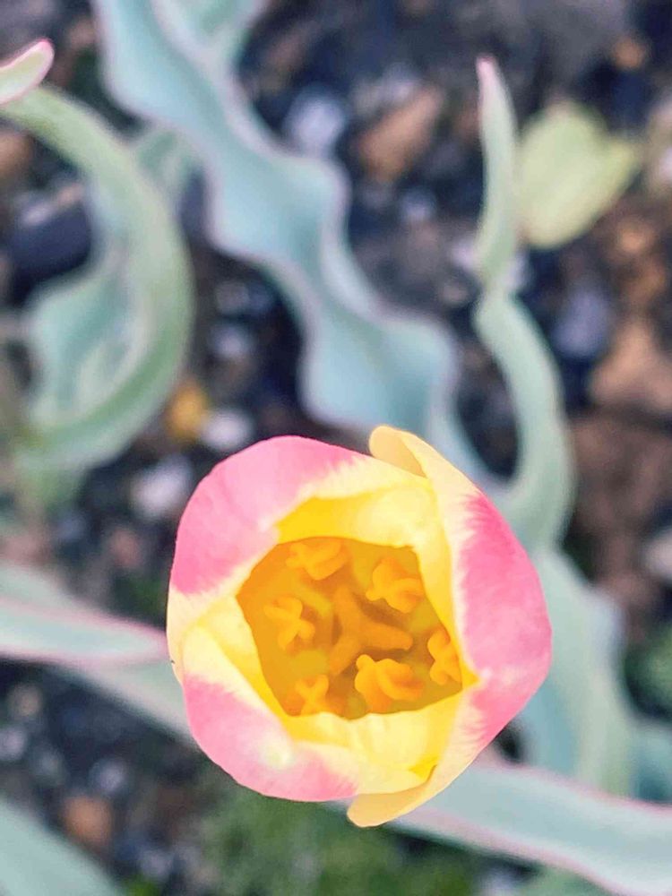 花壇の細長いチューリップさん、中が見えたぁ〜😁