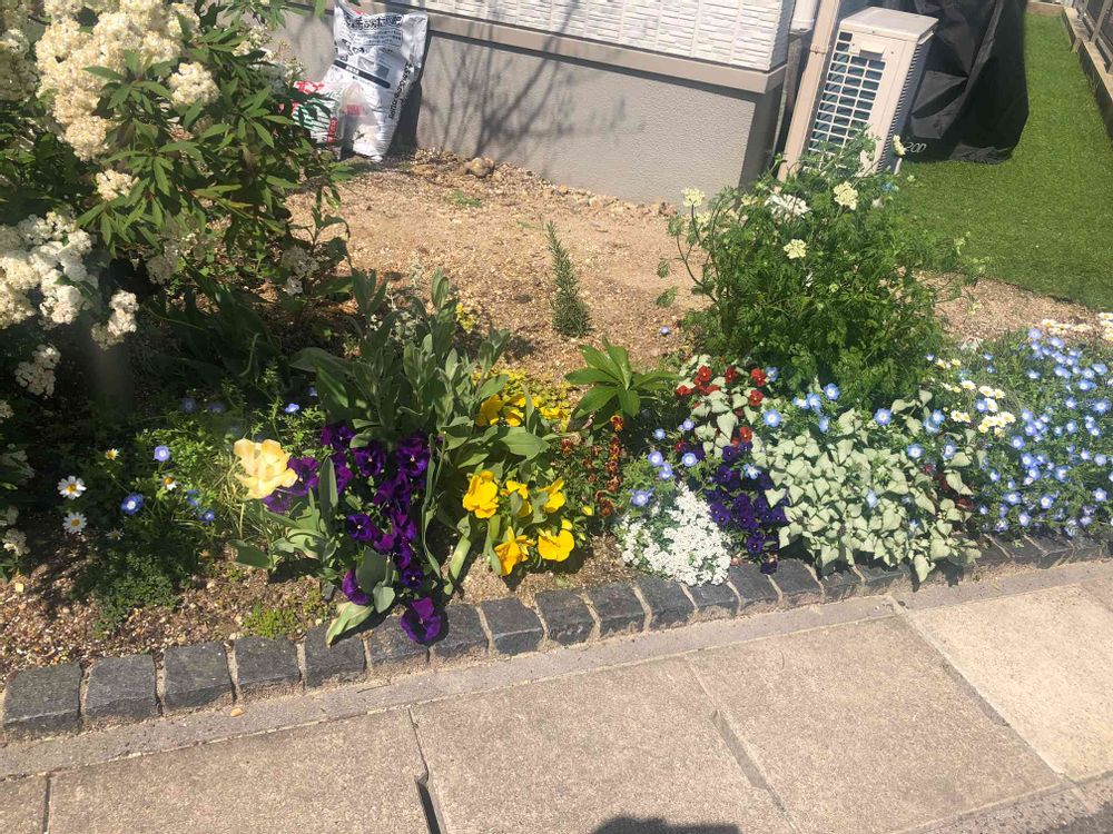 フロントガーデンでは植木、鉢花、宿根草育てています。裏庭の小さな家庭菜園で野菜育てています。夏野菜育てるの楽しいです。