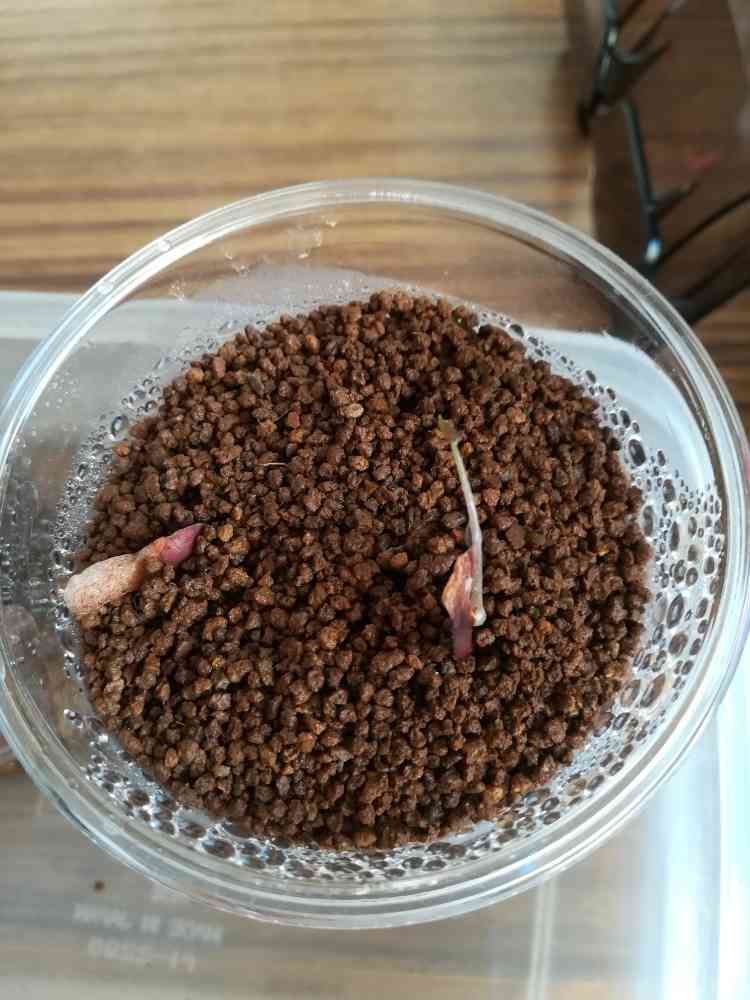 気温も低く、曇天が多くてさっぱり発芽する気配もなかったのでラップをかけたまま忘れてました‥
