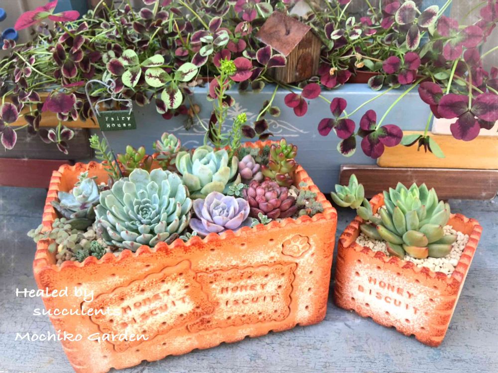 かわいい🍀 多肉チャンたち ビスケットの鉢にぽつんと一軒家🏚️仲間に入れてもらって