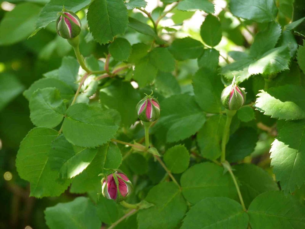 オールドローズのルイーズオディエも蕾がゆるんできました。