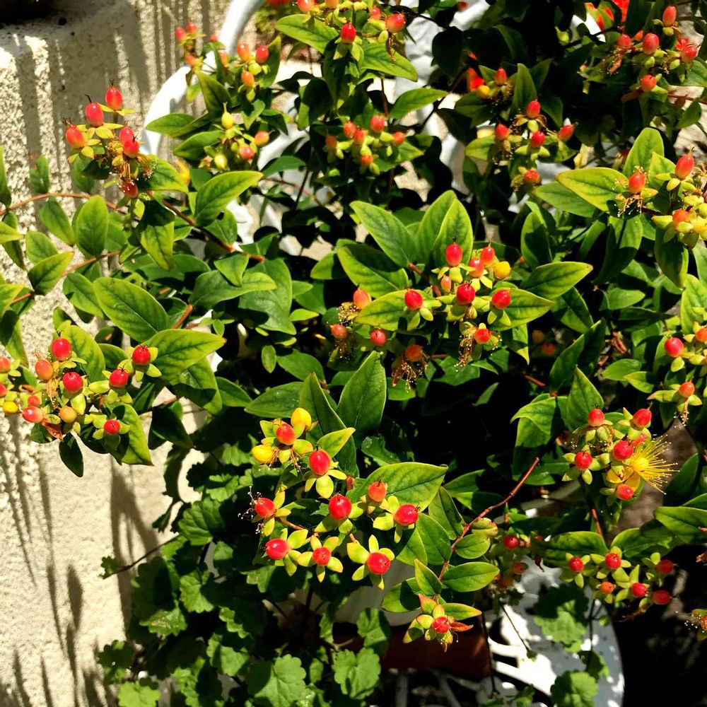 ヒペリカムの魅力はお花の後の可愛い赤い実ですよね❣️あっ、我が家のは赤い実です、最近お花屋さんの切り花でピンクとか有りますよね🤔