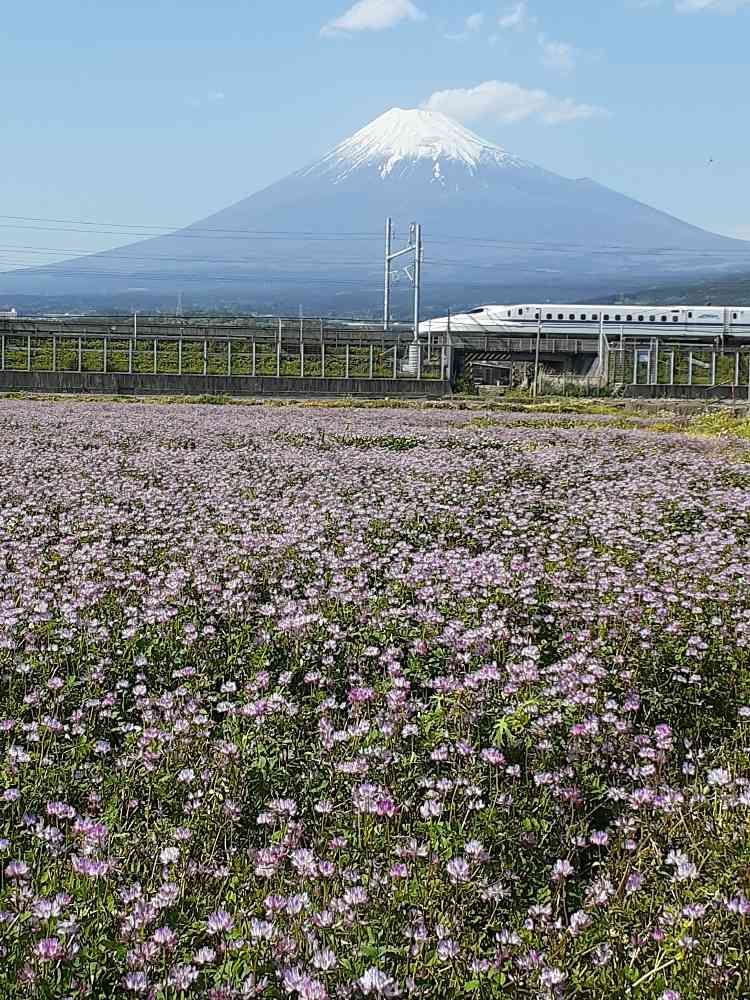〈富士山🗻と新幹線🚄とれんげ畑🌿〉