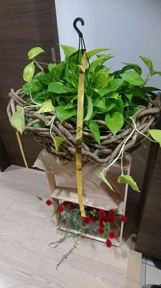 台風の時に買ってきたポトスを玄関に置きました😄