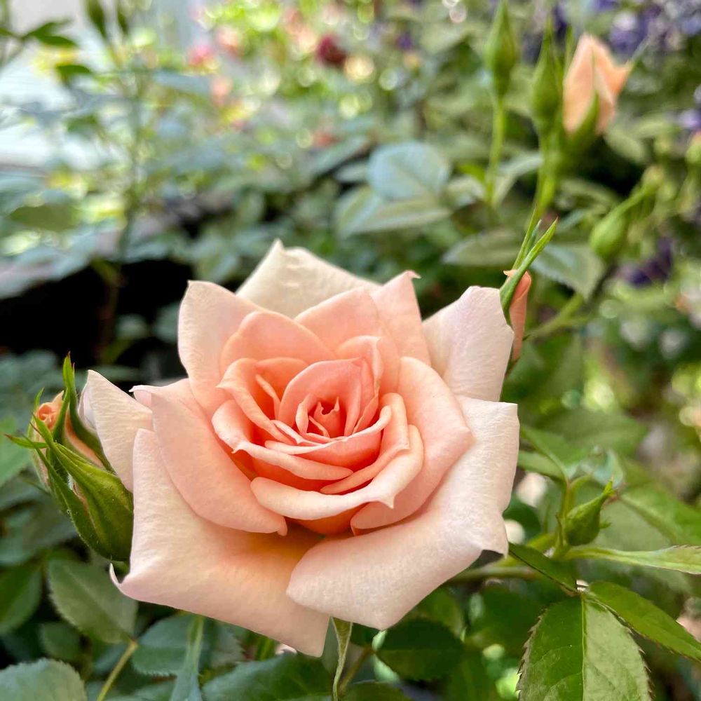 このミニバラは今回ピンクっぽく咲き始めたのですが、開いてきたらもともとのアプリコット色が出てきました😄
