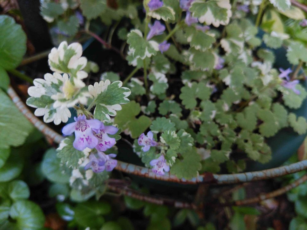 グレコマもカキドオシの仲間とは知らず、園芸店で見かけても「似てるなー」でしたが