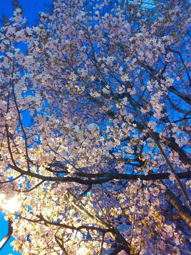 街灯にライトアップされてるみたいで、とってもきれいな初桜でした。明日は休みだから、桜探しに出掛けよーっと。あら?非常事態宣言かしら?(笑)🤭