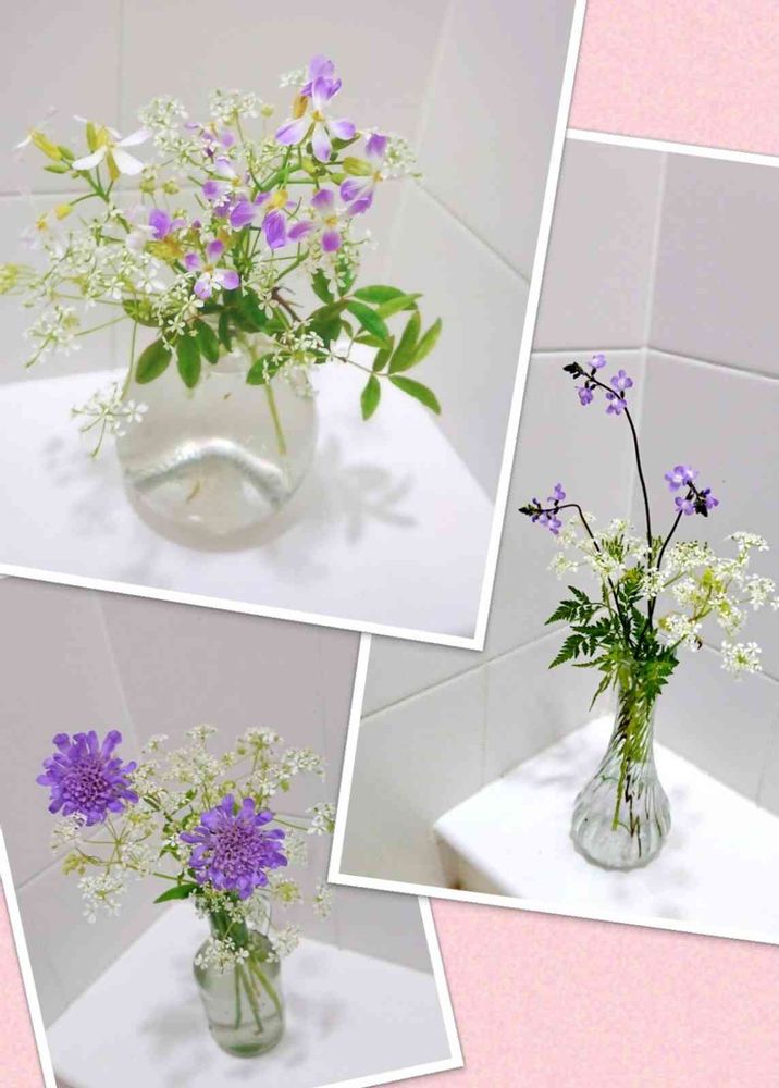 昨日道辺に群生していたセリの花を摘んできたので、色んな花と合わせてみました♪