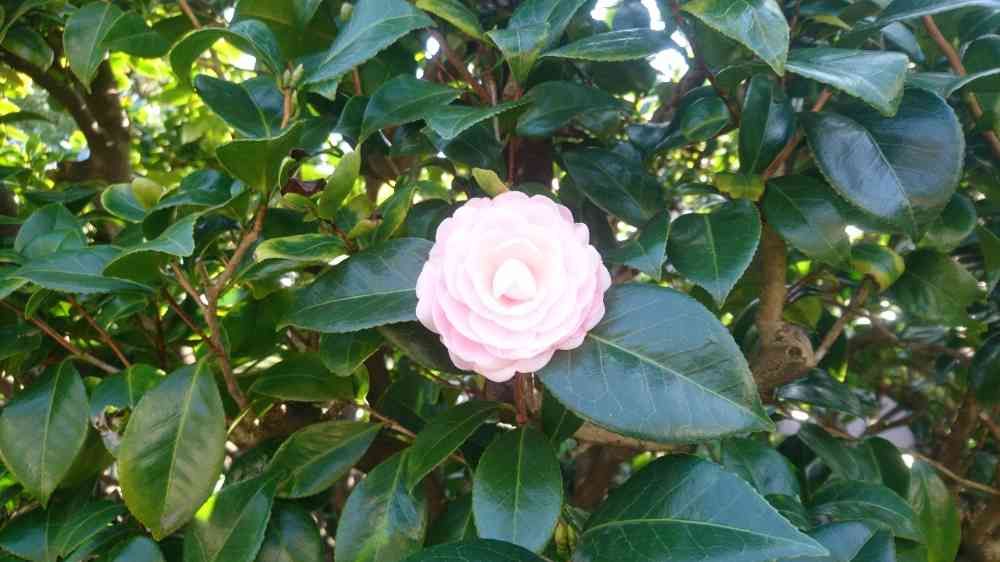 今日、管理のお仕事でお伺いした庭で一輪だけ椿が咲いてました‼️
