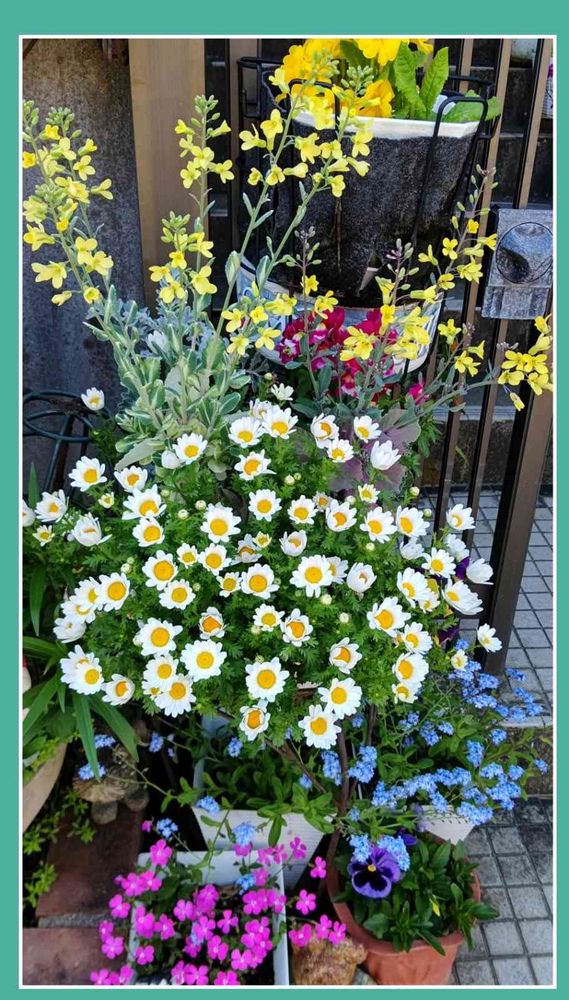 葉牡丹が寄せ植え鉢の中で花が咲いて菜の花に見えますネェ~🐸💞