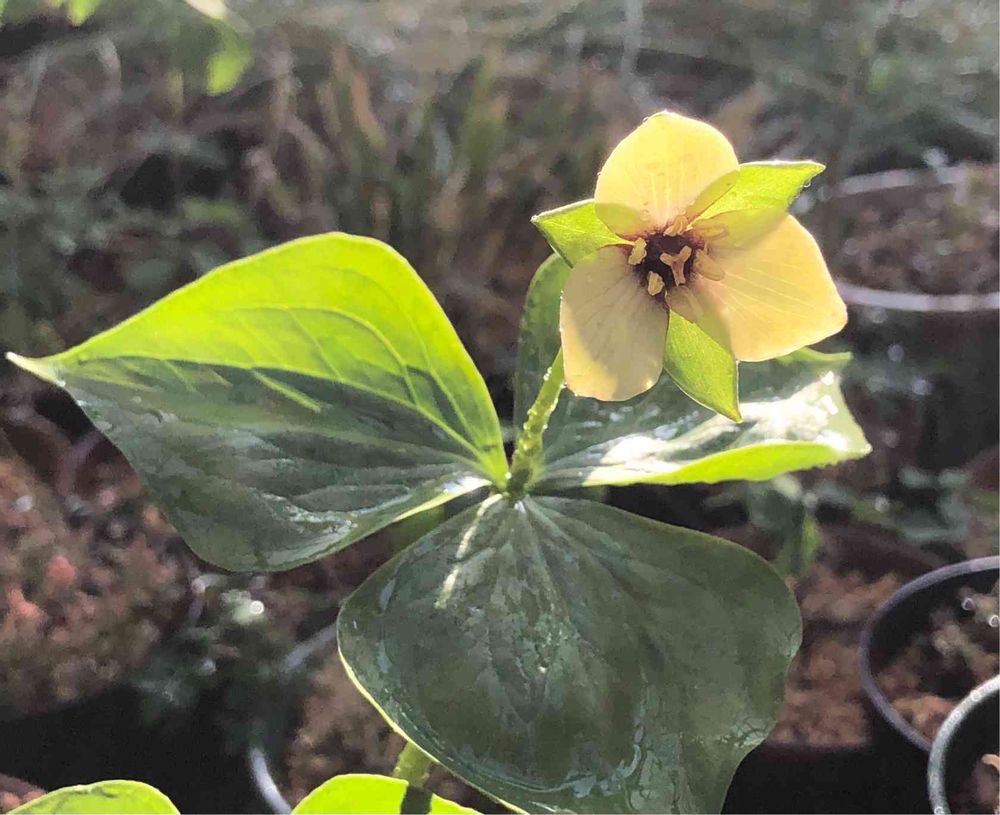 日本のエンレイソウ にはない黄色い花を咲かせる北米原産のエンレイソウ 、サルカータムです💛。ラベルを見たら2006年に種蒔きした事になってました。