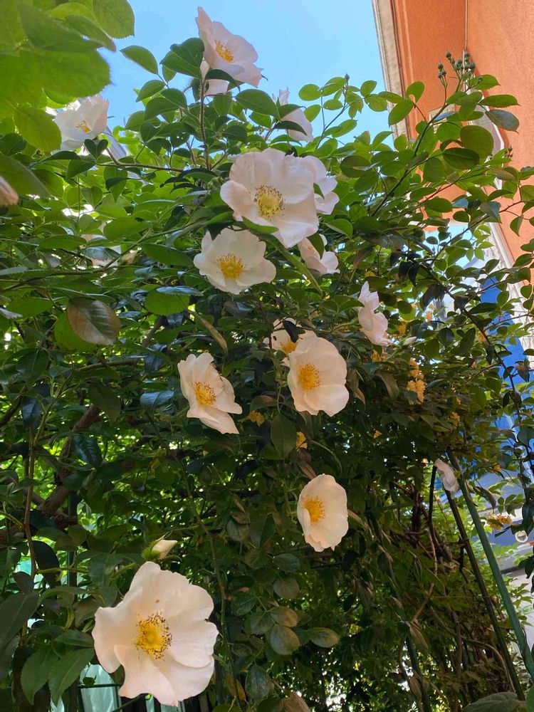 他のバラはまだ蕾ですがナニワノイバラだけは満開です🌹🌹🌹