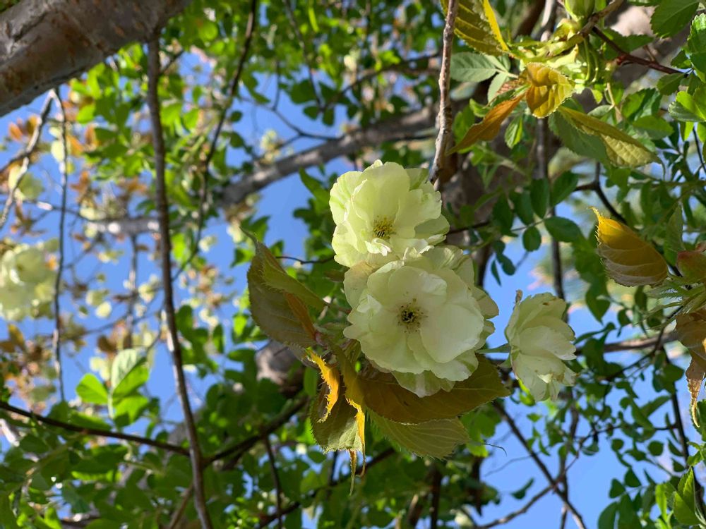 植樹した人は確か御衣黄桜だと言っていたのですが、鬱金桜じゃないと意見がわかれて…