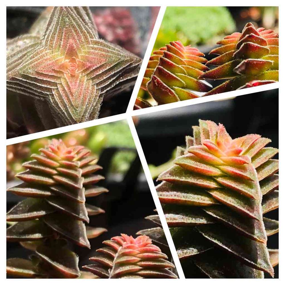 クラッスラでも群を抜いた幾何学図形のような暁の峰(茜の塔錦)です😊