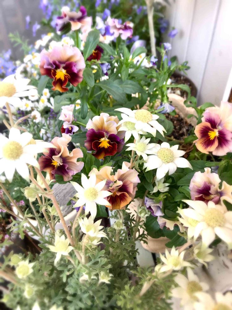 バルコニー/ベランダ,フランネルフラワー,パンジーマシェリマダムの投稿画像