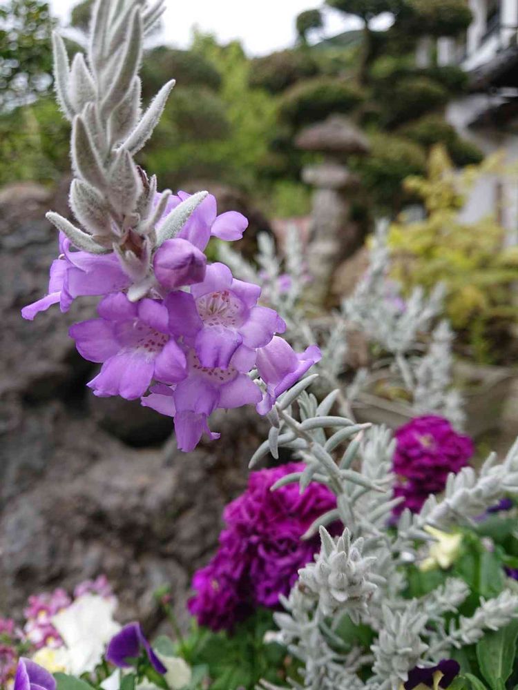 寄せ植えの中のエレモフィラニベアが咲きました🌼🌼紫の花が綺麗です😆