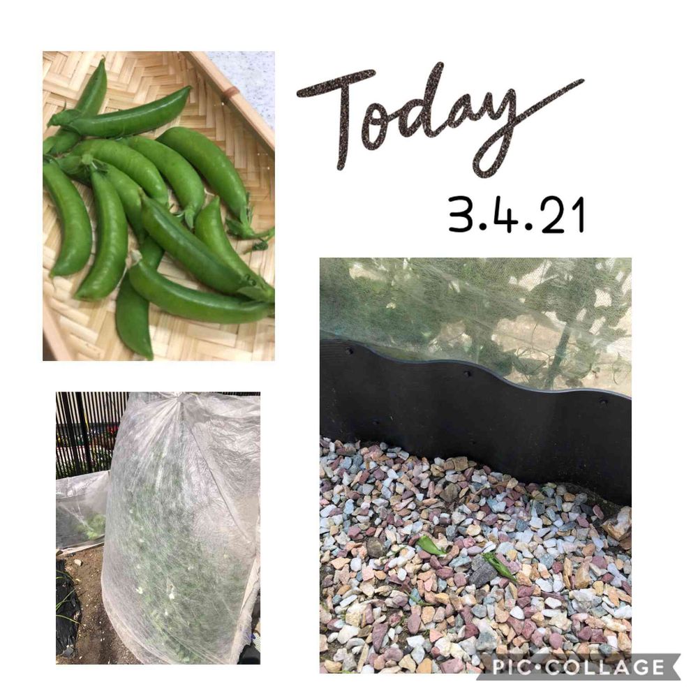 大好きなスナップえんどうを種から育てここ数日は10個以上毎日採れるように❣️しかし‼︎今朝、残骸が😫どうやらカラスの仕業💦急いで不織布をかけました☺️