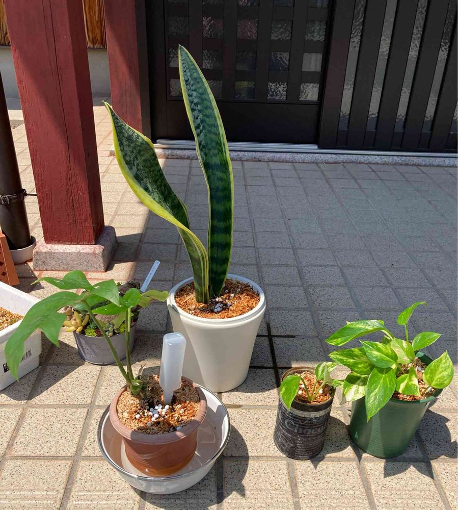 室内で空気清浄してくれてる観葉植物たちの日光浴