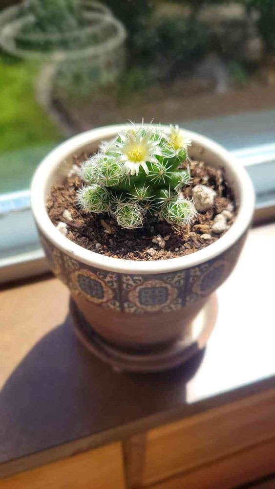 先日買ってきて、鉢に移したサボテンに花が咲きました😊