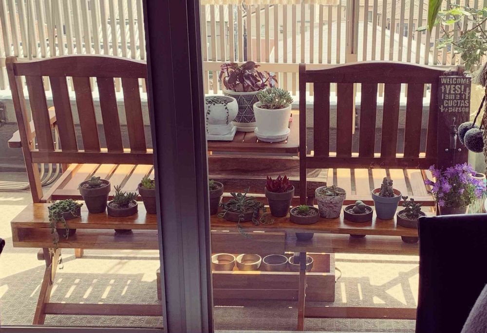 バルコニーのベンチの背面の小さな多肉たち💕元気に育ってね🤗❤️