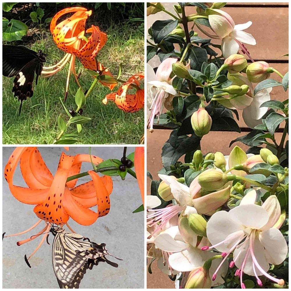 都会ではこんな素敵な🦋🦋出会えません😉昨年フクシアの赤を購入し楽しみにました🎵可愛いいお花です🍀😌🍀