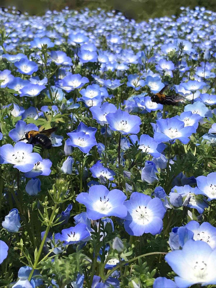 ネモフィラ畑🔷を元気に飛ぶ クマバチさん(かな?)