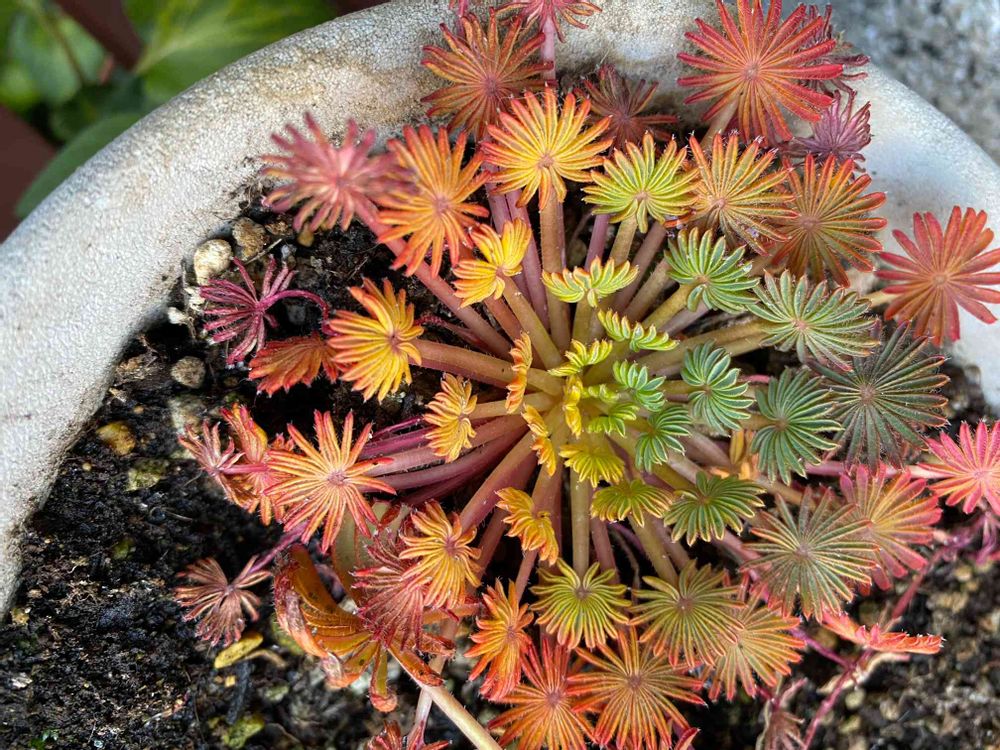 球根を5個頂いて、そのうち3個が芽がでたのですが、こんなに綺麗に広がって紅葉したのは この1つだけなの。