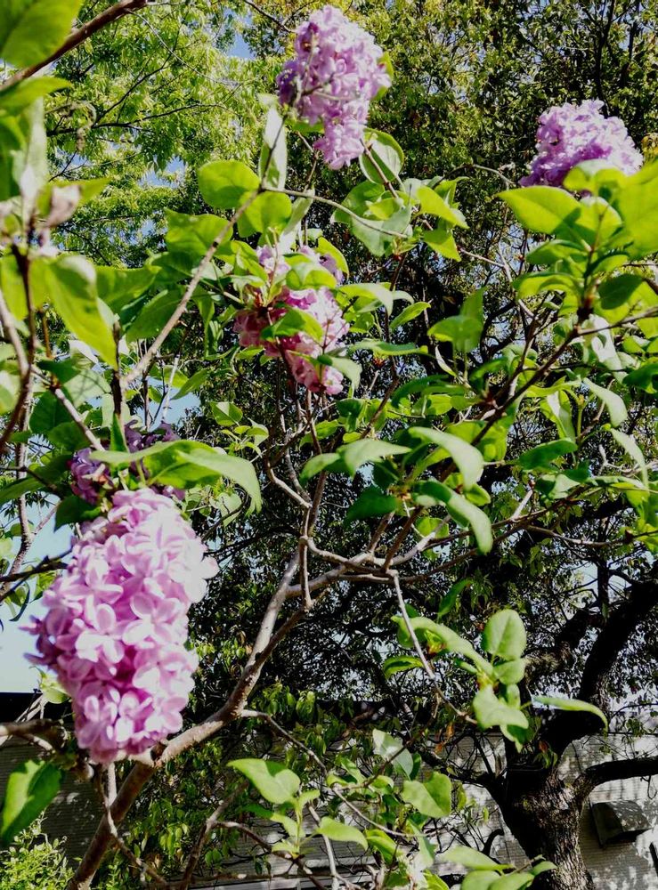 散歩道(南郷公園 丹波亀山城趾内濠跡)のライラックが開花しました。