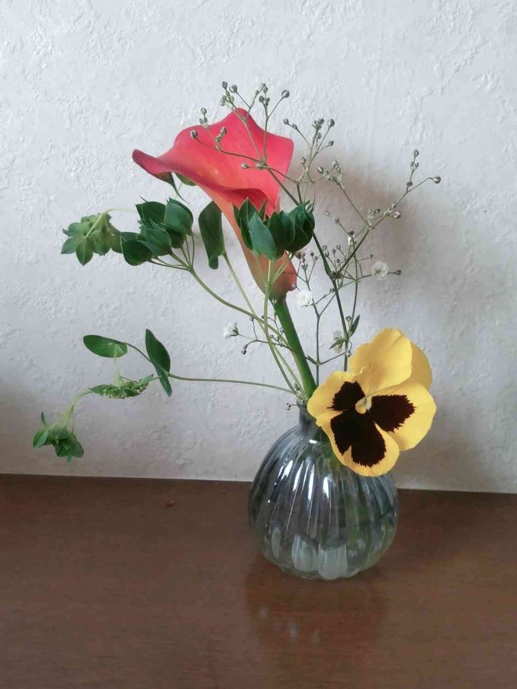 ハイオクさんのカラー,パンジー,かすみ草の投稿画像
