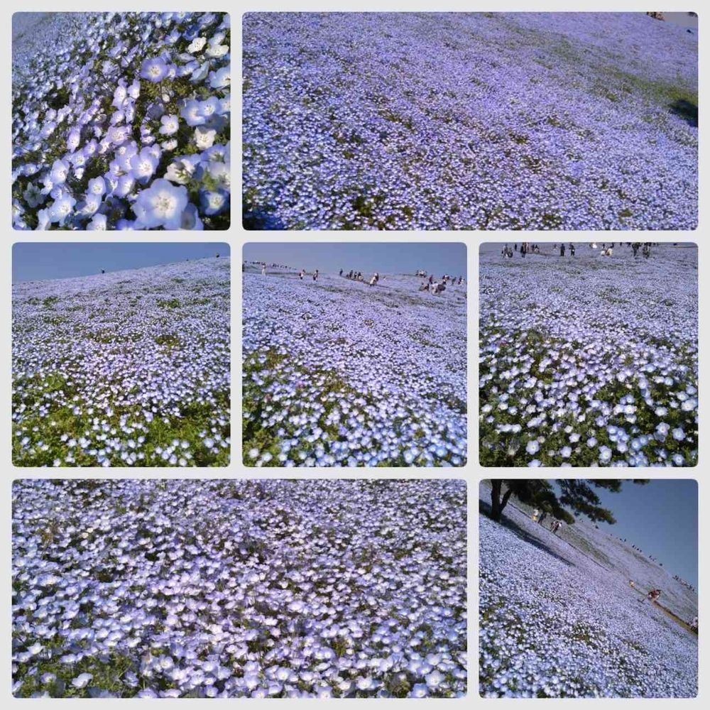 今晩ゎお疲れ様です*(*´◒`*)*♡ひたち海浜公園ネモフィラの全体像です