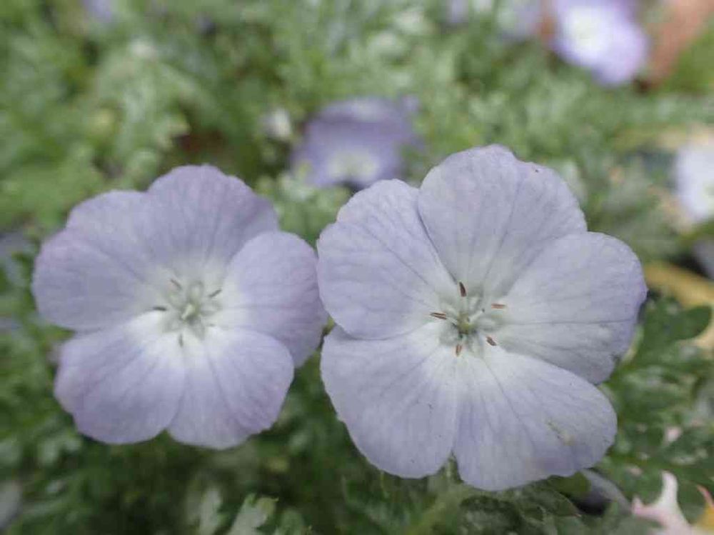 ネモフィラ・プラチナラベンダーです。銀葉と、淡いラベンダー色のお花がとても魅力的な品種です😊