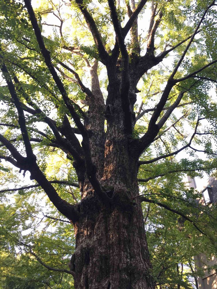 日比谷公園の首掛けイチョウを見上げる。首を掛けても木を守り抜いた人に思いを馳せました。