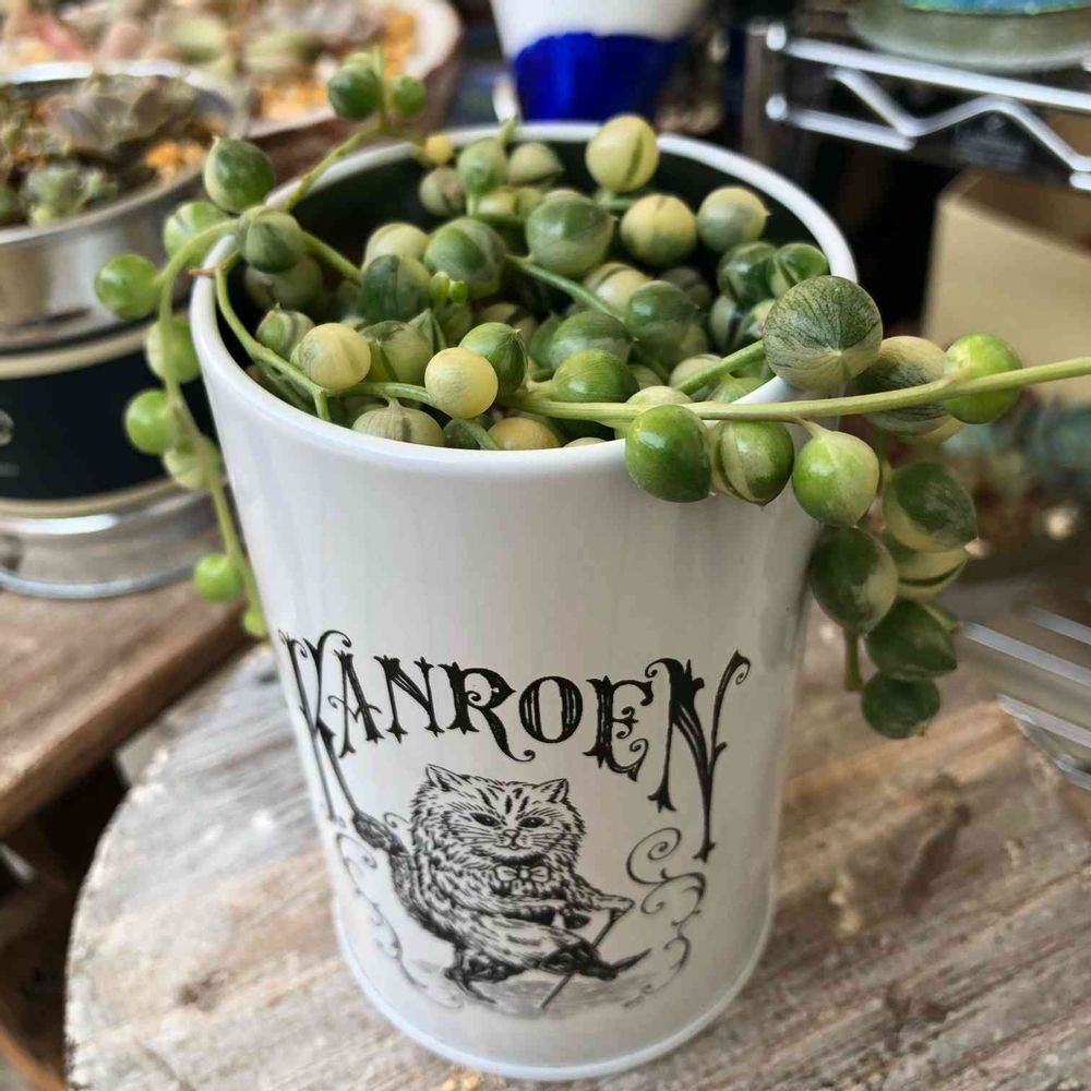 お気に入りの缶に、斑入りグリーンネックレスを植えました❤︎
