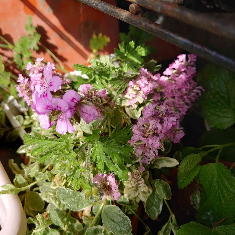 バルコニー/ベランダ,蚊嫌草(ハーブゼラニウム),アジュガ ピンクライトニングの投稿画像