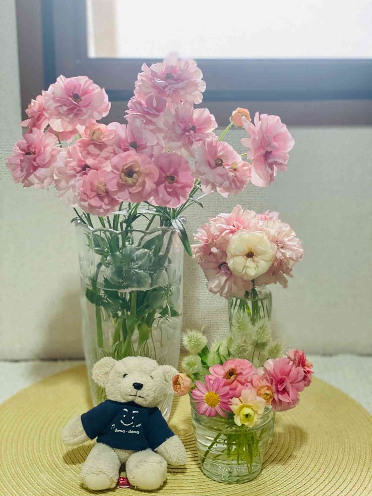 ベランダのラナンキュラスラックス・アリアドネ、うどん粉病になってしまったので、思い切ってバッサリ剪定✂️して、玄関に飾ったりました😊