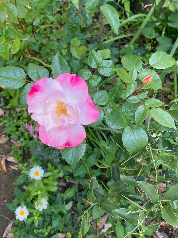 ひとえのバラが咲きました。やさしい色合いが好きです。