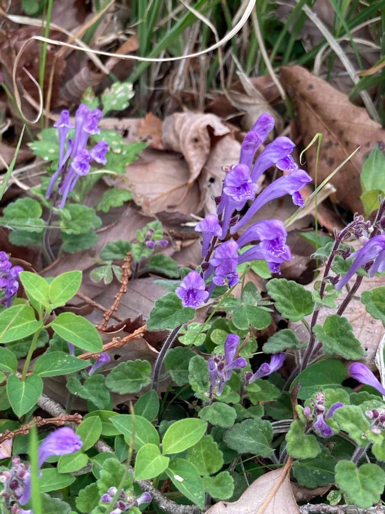 コバノタツナミです。タツナミソウの変種で高さは15センチぐらいで背が低いです。花が一斉に同じ方向を向く姿が、波🌊のようだということで名付けられたそうです。植物って変なネーミングが多いなかで趣ありますね。シロバナも咲いてました。こぼれ種の野生化かもしれません。