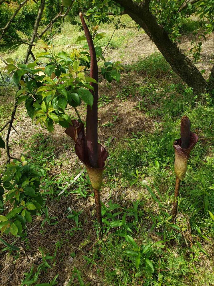 コンニャク畑でフルーツ取れ。。。はしないけどコンニャクの花が出てる。見ためメッチャ不気味だから草むらとかで出てたら逃げ出しそうな気がスルー。。。
