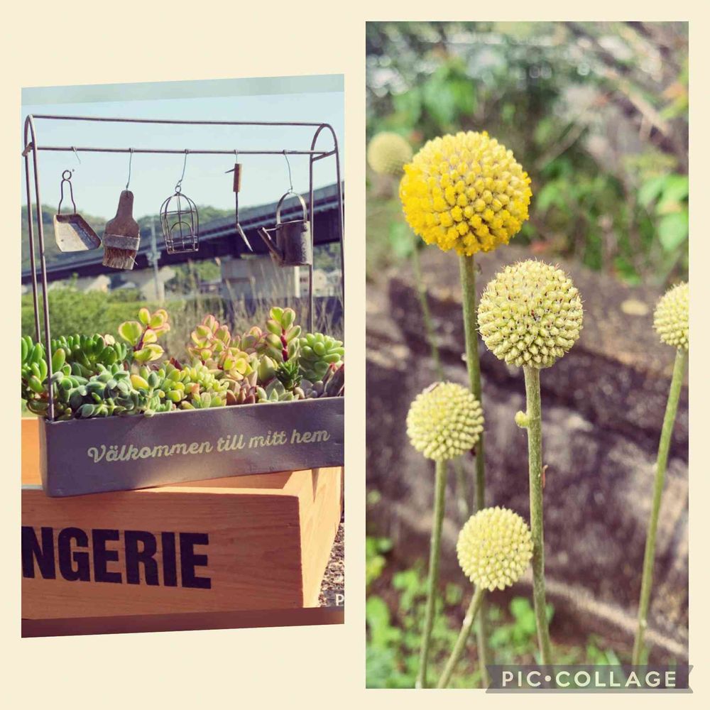 多肉のケースもお花も、とっても可愛いです♪❤️チリトリやジョウロも吊るされて可愛いすぎます❣️