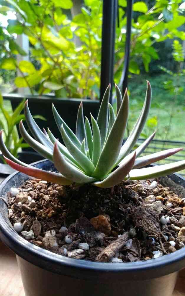 ツンツン尖った葉が、綺麗な上向きのロゼットを作っていて、粉が少なくてもいい感じ。