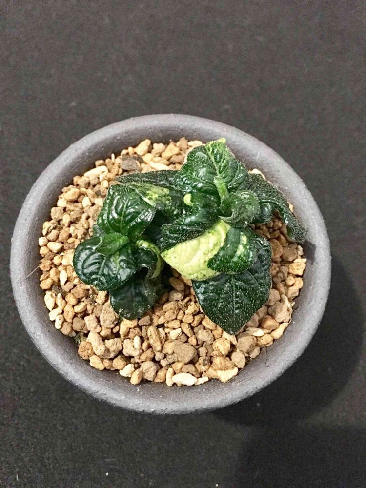 こちらはまだ花が咲いた事がない姫ミズヒキソウの羅紗葉の斑入りです。