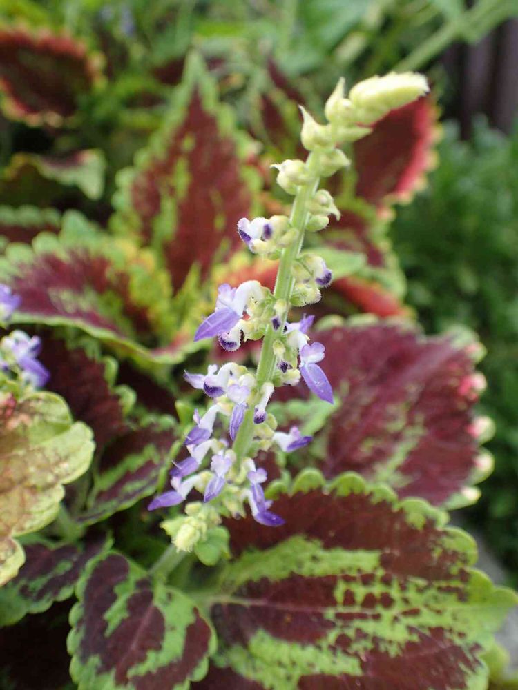 葉が美しいコリウスですが、花も薄紫色で上品な感じがします。色々な葉の模様が楽しめます。