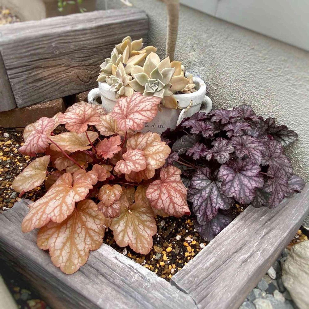 多肉花壇の隣にヒューケラ花壇 𖥧𖤣.*゚