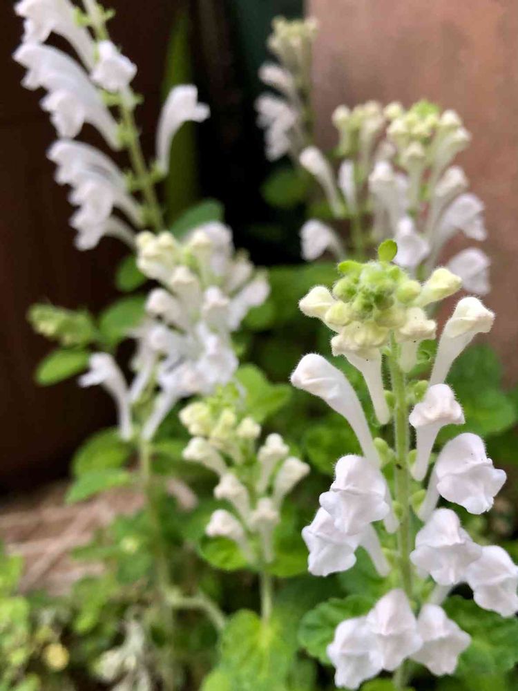 プランターを飛び出したタツナミソウ🤍🤍🌿家の周りで咲いています😅